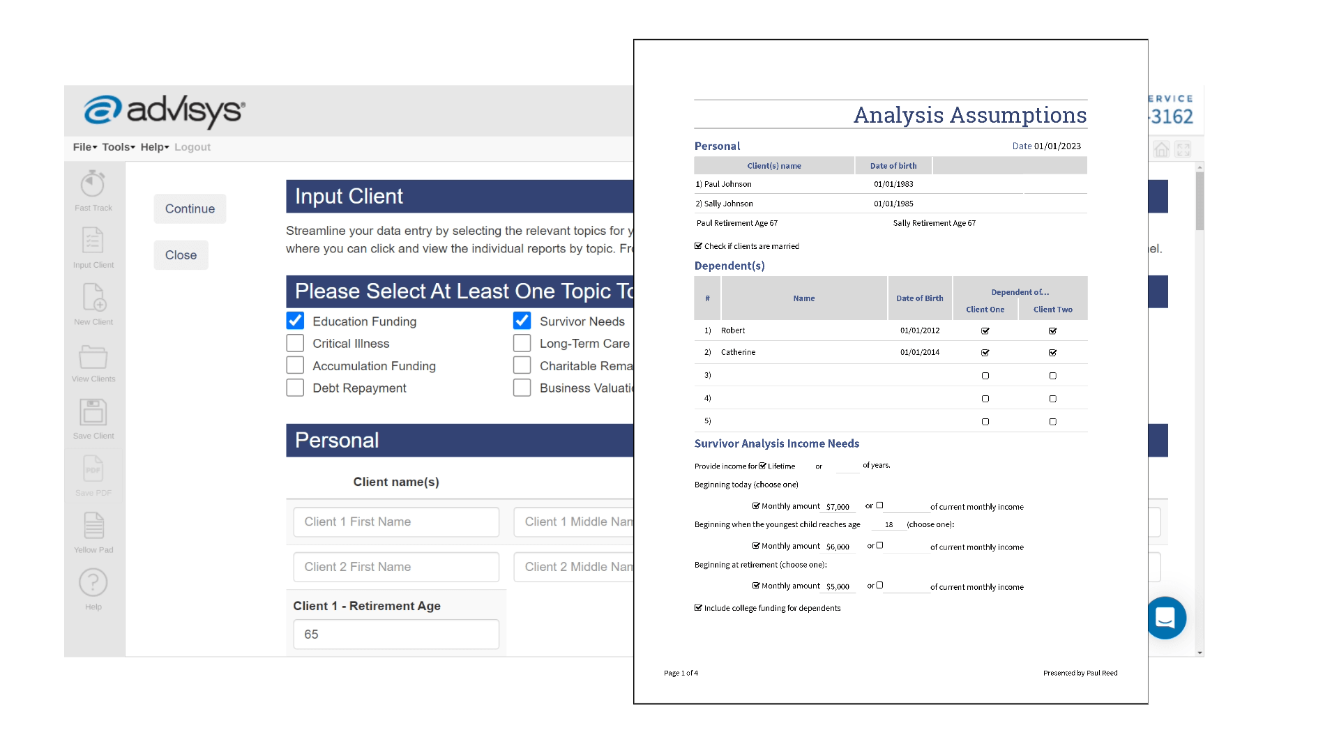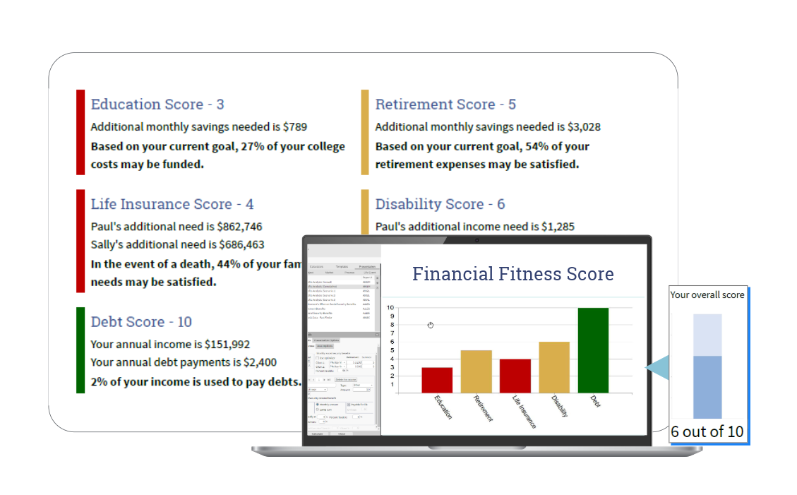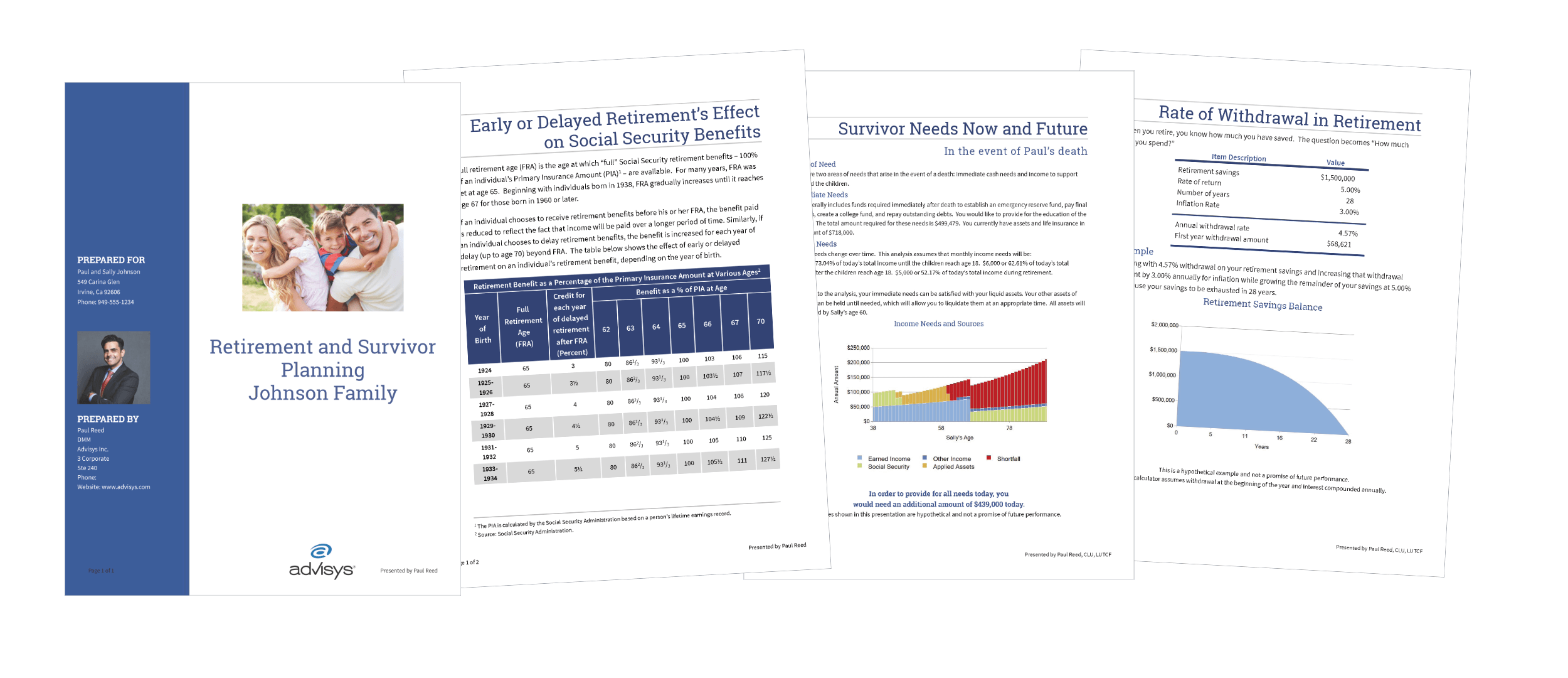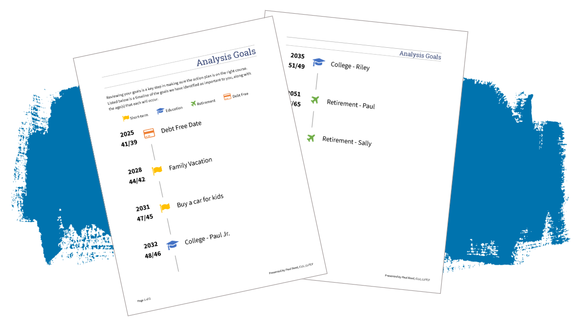 Where do your clients want to go? The Analysis Goals Summary report automatically populates key client milestones from our needs analysis into a visual roadmap you can review to keep clients focused on what's important.