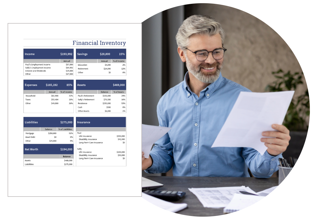 Where are your clients today? The Financial Inventory report acts like an asset X-ray, giving you and your clients a clear, organized look at their entire financial landscape all on one page. Help build a foundation for confident, informed decisions.